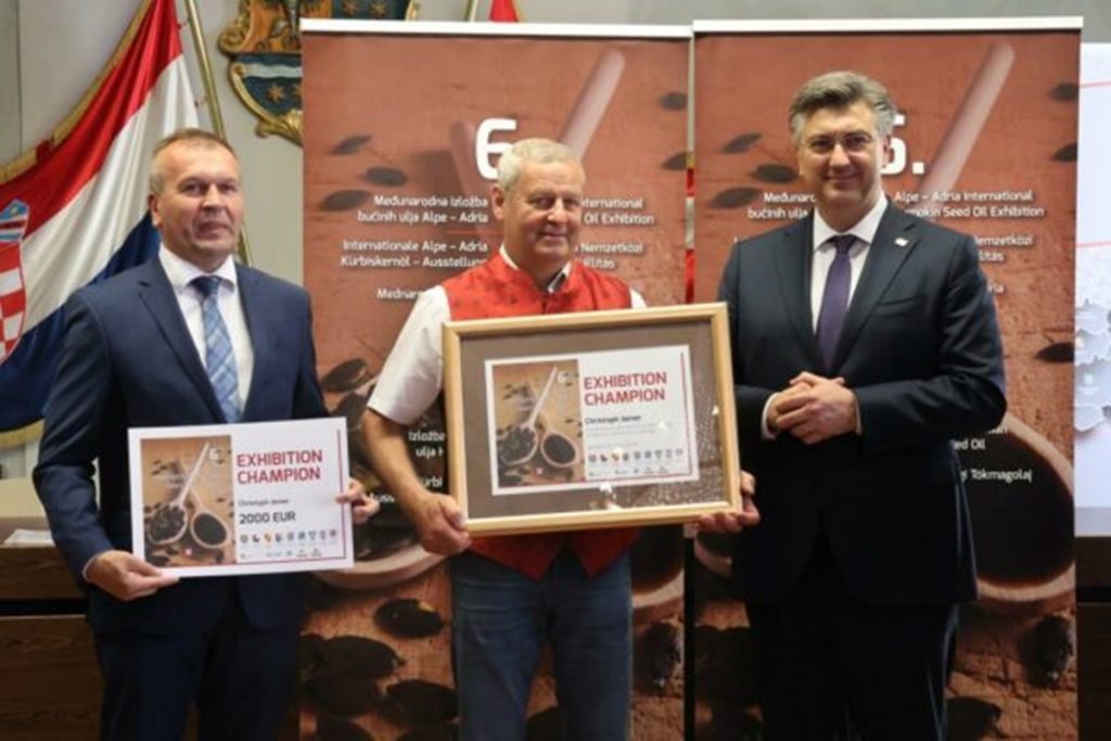 Budući da je na izložbi bilo prijavljeno više toplo prešanih ulja, šampionom izložbe proglašen je Christoph Jamer iz Austrije sa uzorkom koji je dobio ocjenu 33,10. Plakete su šampionu i nagrađenima zlatom uručili predsjednik Vlade Republike Hrvatske Andrej Plenković i župan Varaždinske županije Anđelko Stričak.