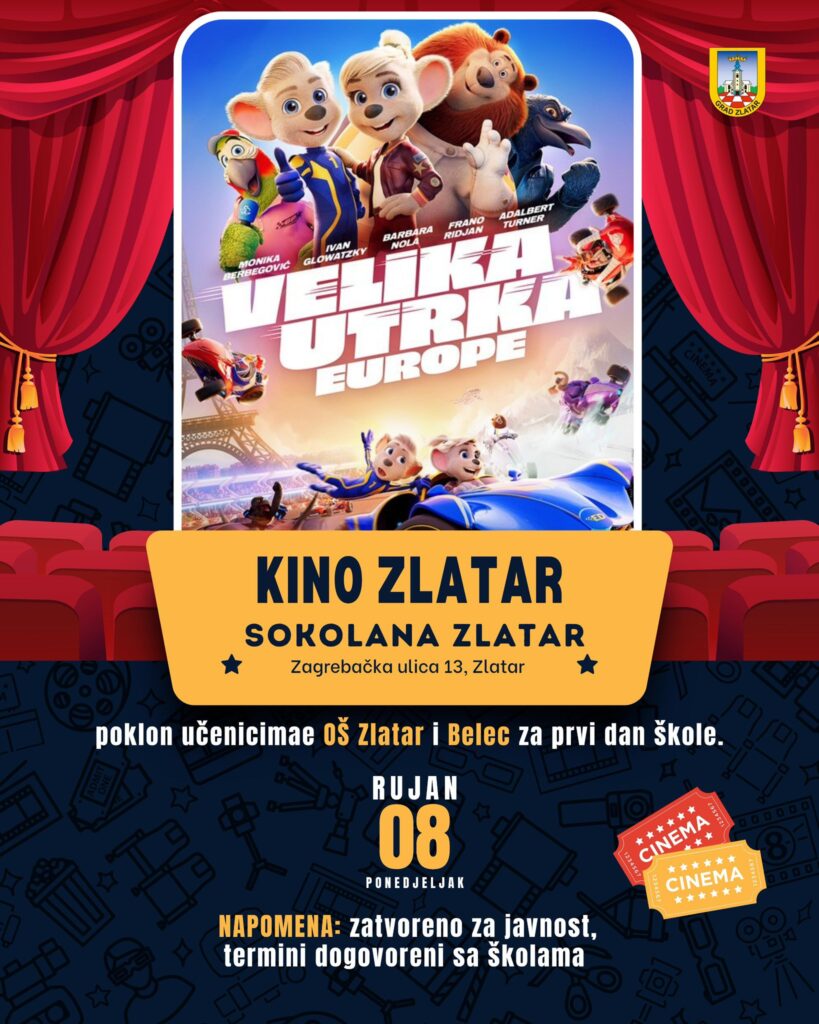 Važno je istaknuti da su projekcije 8. rujna namijenjene isključivo učenicima OŠ Zlatar i OŠ Belec, a kino će toga dana biti zatvoren za širu javnost.